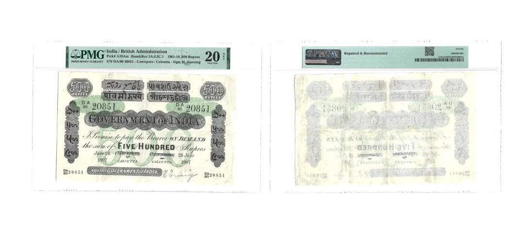 British India, Unifaced, 500 Rupees, Cawnpore or Calcutta, 26 June 1907, Signed by H. Denning.